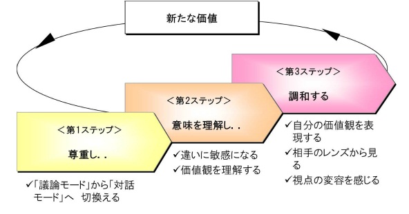 価値観の調和を目指す対話を実践するプロセスの中で、自身の視点の変化や関係性の変化を体感し、現場で応用できるようになります。